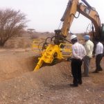For excavators with hydraulic oil supply of 200-225 l/min at 300-350 Bar. Designed to fit on the digging arm of larger excavator, and digging wherever the arm can reach: over barriers, down slopes, in road verges, in canals, etc.