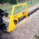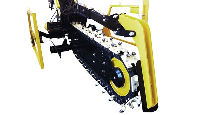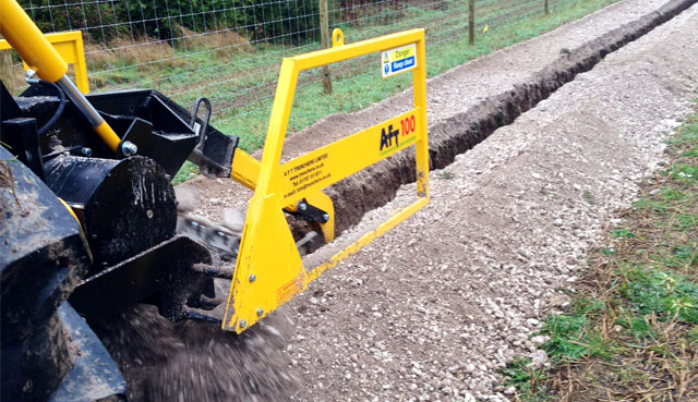 The AFT100 trenching machine is a tough trencher which is perfect for tough digging conditions. For tractors from 80 to 140+ hp (60-105kW), with vario transmission or a creeper gearbox, or for a Unimog with Crawler gears and a PTO shaft. The ideal tool to quickly install fiber optic cables and water pipes.