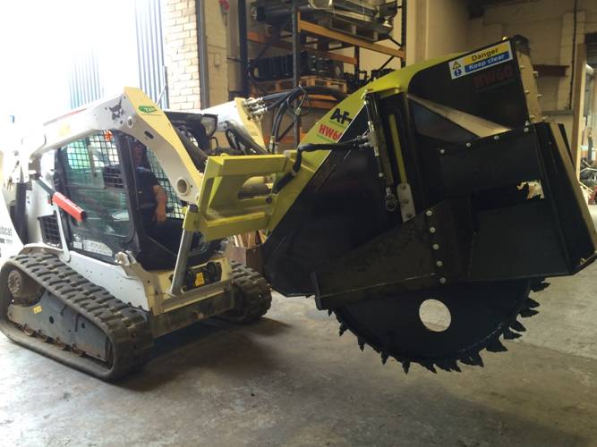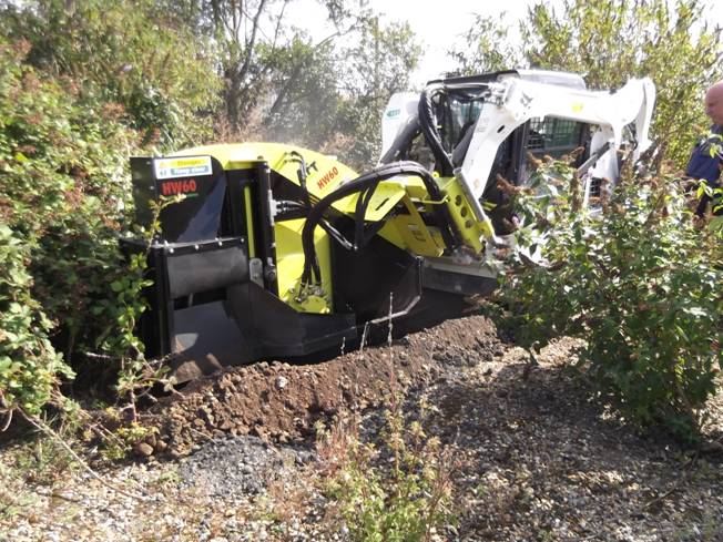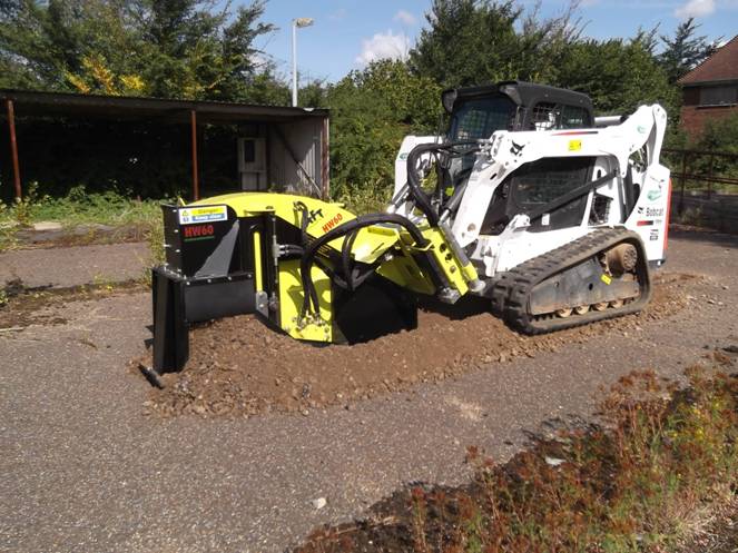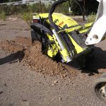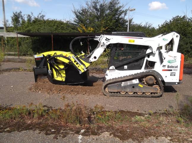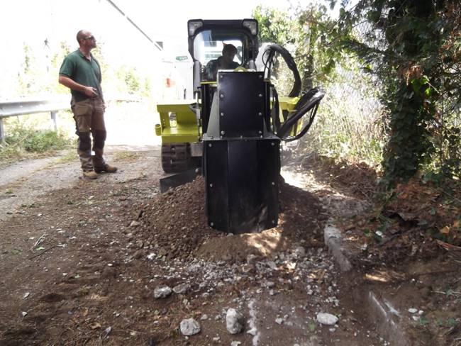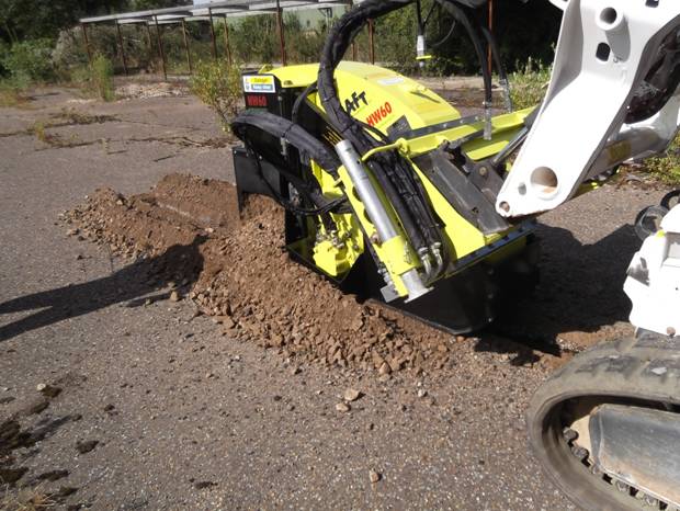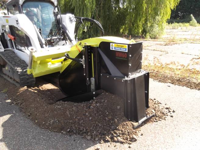It is designed for skid steer loaders with “high flow” hydraulic oil supply of 110-130 l/min at 180 Bar. It also can be fitted fit on excavators to dig wherever the arm can reach: over barriers, down slopes, in road verges, etc.