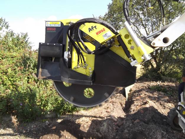 The hydraulic wheel trencher HW60 is the most effective trencher for clean, quick and reliable trenching and is much used for installing (fiber optic) cables in roads and other hard surfaces.