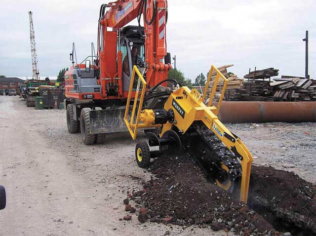 - Soil auger assembly (to place the finely cut spoils to the sides of the trench)