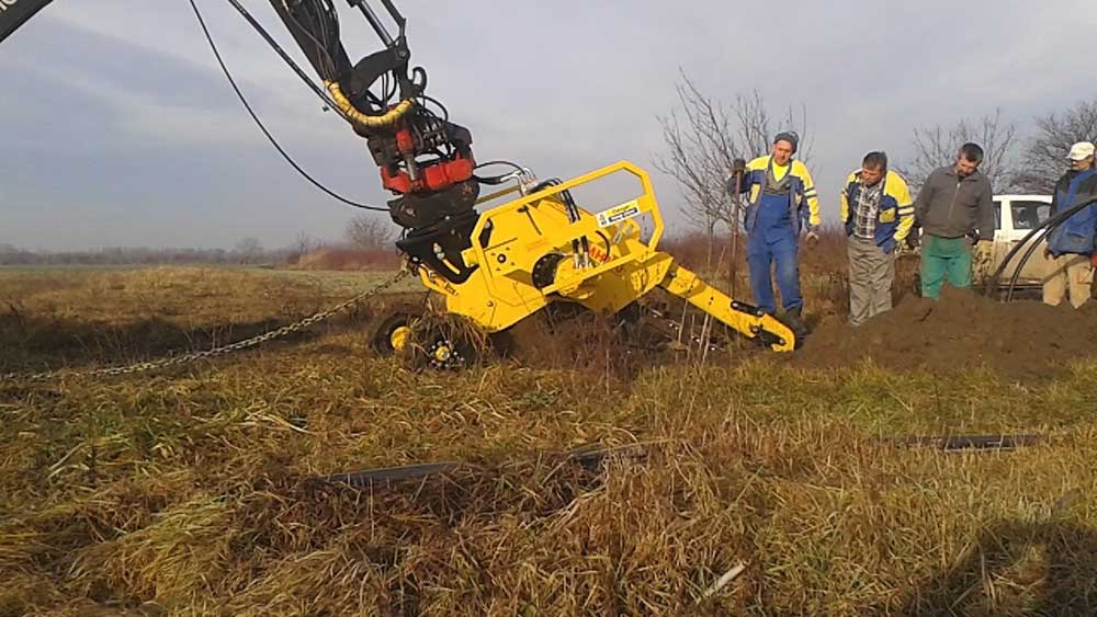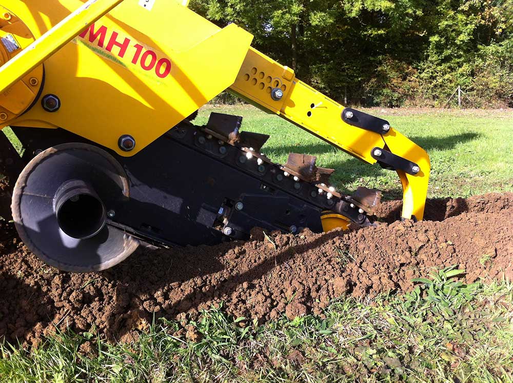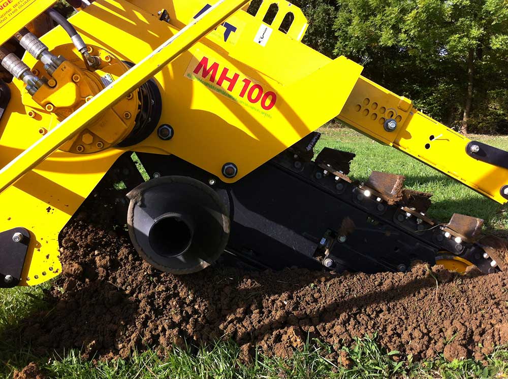 - You have a tractor: We can recommend our AFT100 trencher with a agricultural chain or with a heavy duty bullet chain, which is ideal for hard soil conditions. More information can be found about the AFT100 on this page.