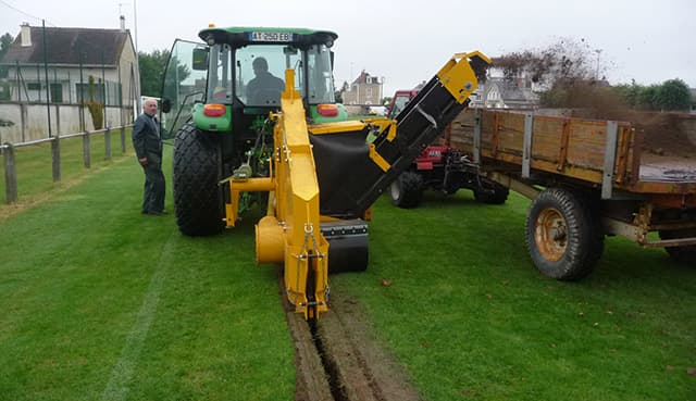 Powerful and rugged wheel trencher for tractors from 60 to 120hp (45-90kW), designed for the installation of intensive sportsturf drainage systems. A wide range of options allows you to tailor the ’55’ to suit your needs.