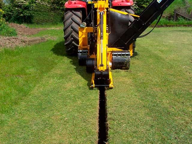 Мощный и надежный траншеекопатель с колесом для тракторов от 90 до 140л.с. (60-105 кВт), предназначенный для установки дренажа спортивных площадок, который также широко используется для установки оптико-волоконных кабелей во всем мире.